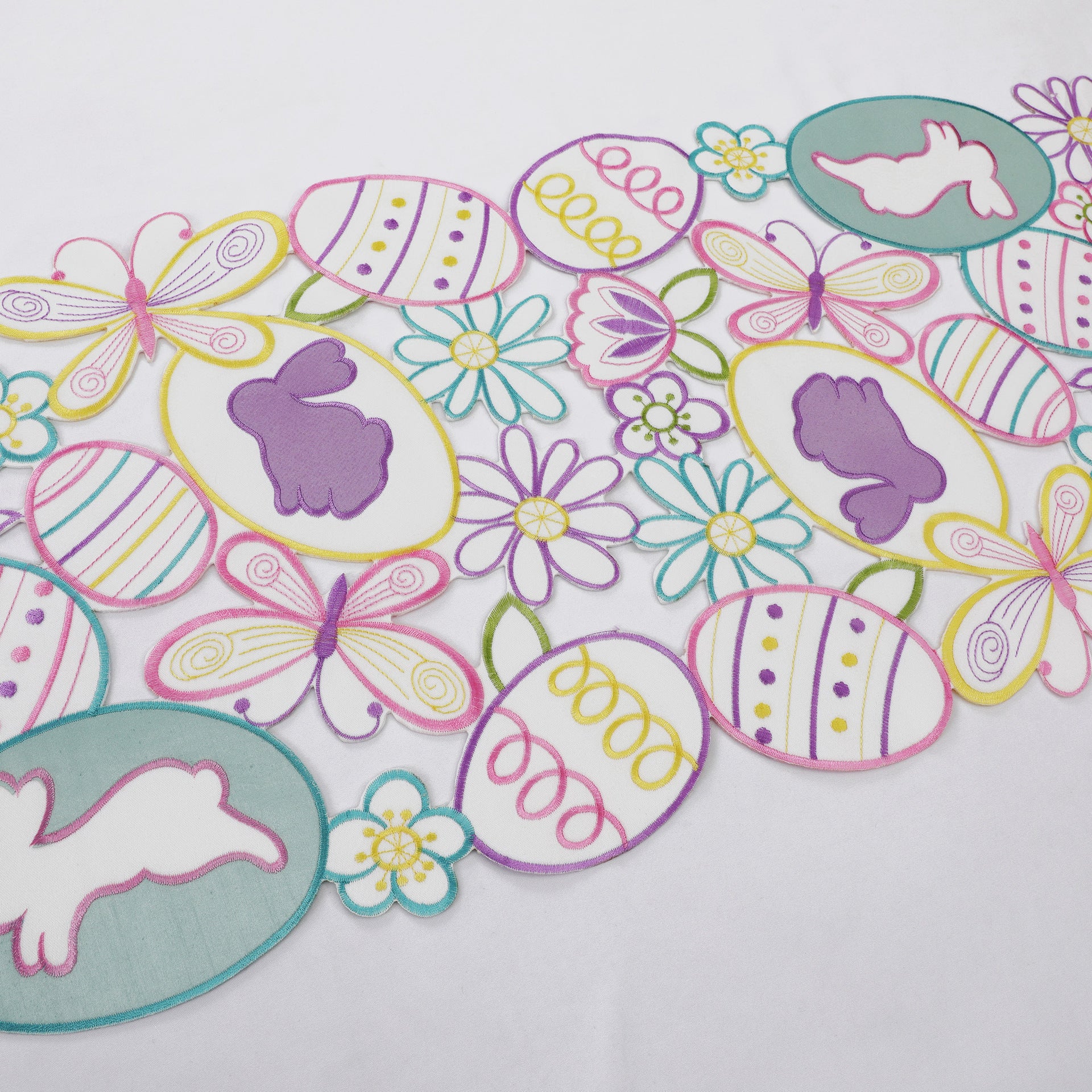 Easter Embroidered Table Runner - Bunny & Egg Floral Decor for Spring Dinner Table (13x72 Inches)